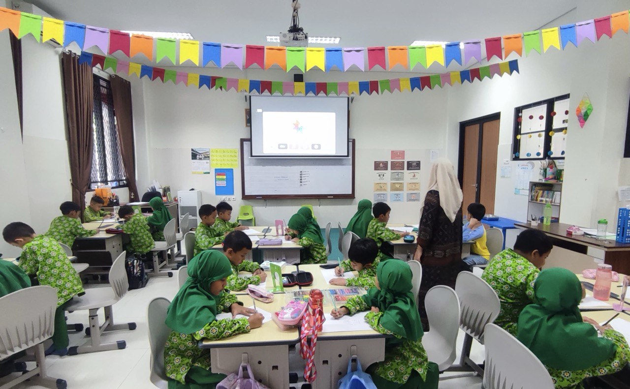 Siang itu kelas tampak ramai. Peralihan dari makan siang ke pelajaran berikutnya. Anak-anak masih dengan aktivitasnya masing-masing. Ada yang masih menikmati makan siang, mencuci piring, pakai kaus kaki, makan buah,…